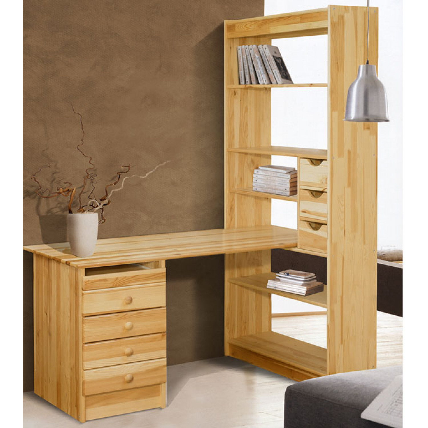 Письменный стол №11 выполнен из массива сосны,в данной модели вы можете самостоятельно указать цвет и выбрать материал,выбрав соответствующую опцию.