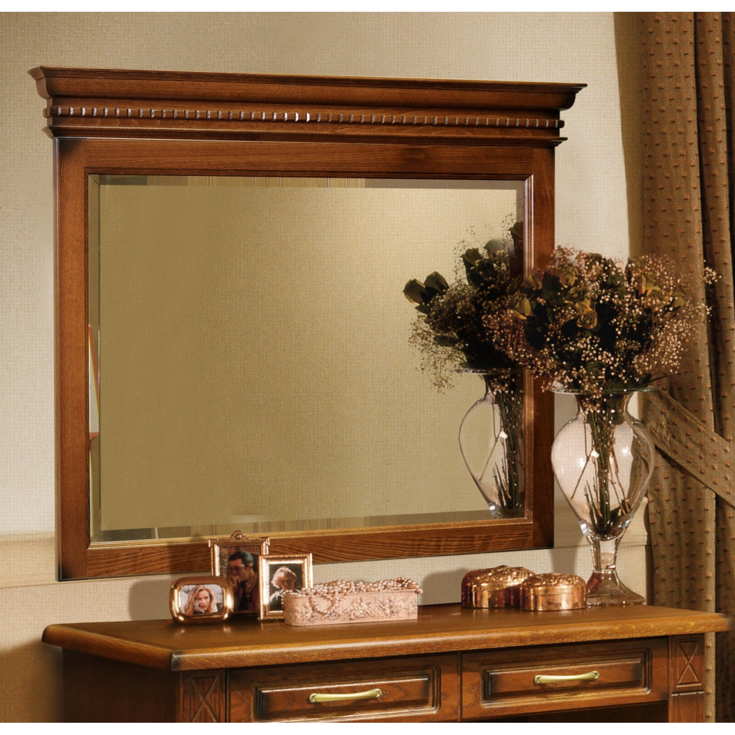 Зеркало Верди выполнено из массива сосны,в данной модели вы можете самостоятельно указать цвет и выбрать материал,выбрав соответствующую опцию.